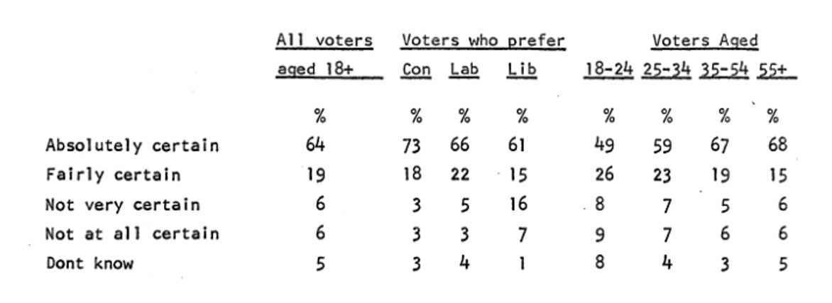 In the extracted table below (see page 3) people were asked ‘how certain is it that you will go and vote at all?’